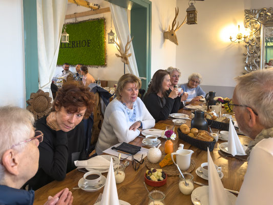 Am 11. Oktober 2025 haben wir uns zum jährlichen gemeinsamen Frühstück getroffen, es waren 18 Mitglieder und 5 Gäste gekommen. Die Location war dieses Mal der Ellerhof in DU- Mündelheim. Es war sehr schön, sehr laut und sehr eng. Es hat Spaß gemacht.